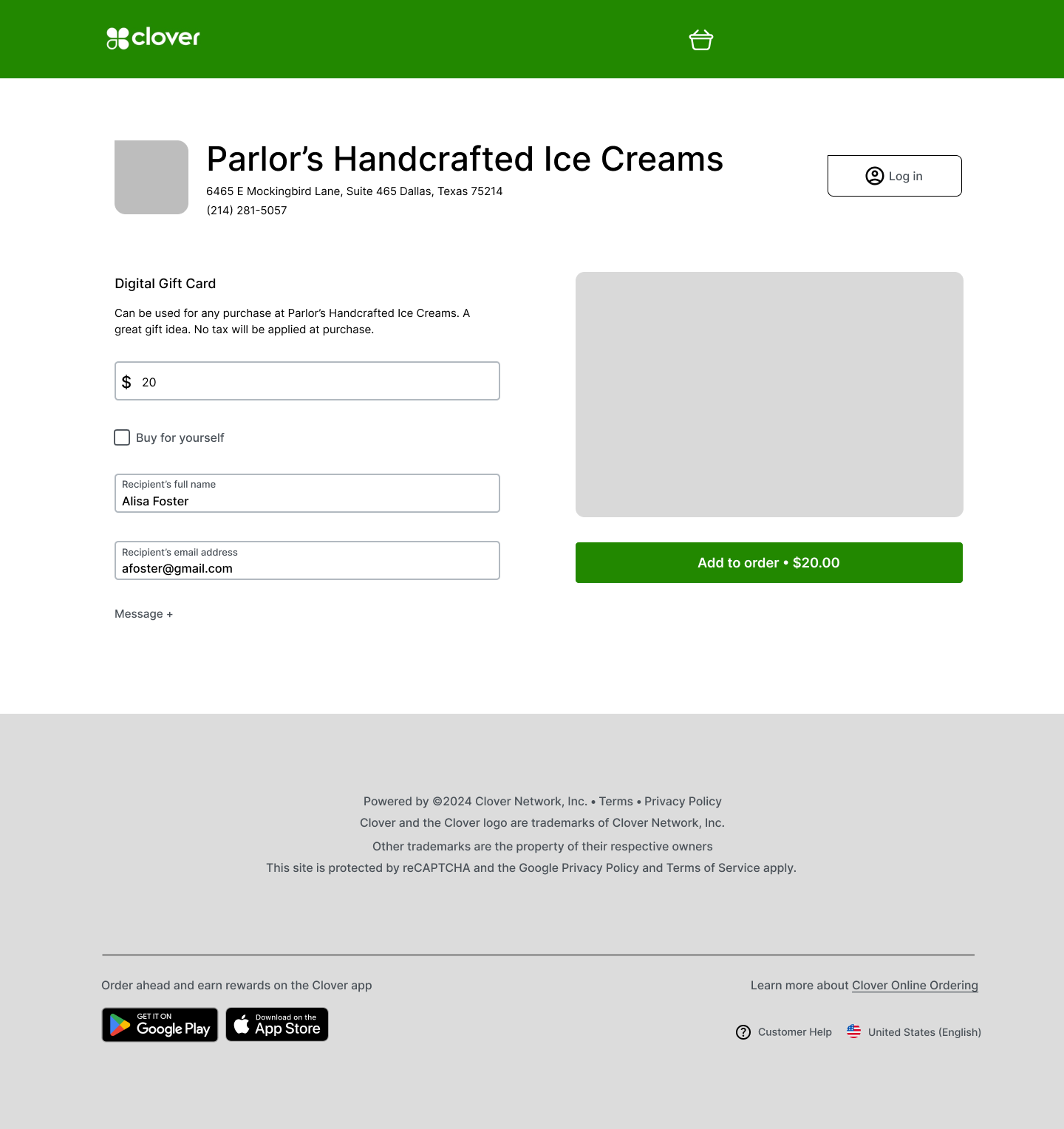Purchase a digital gift card