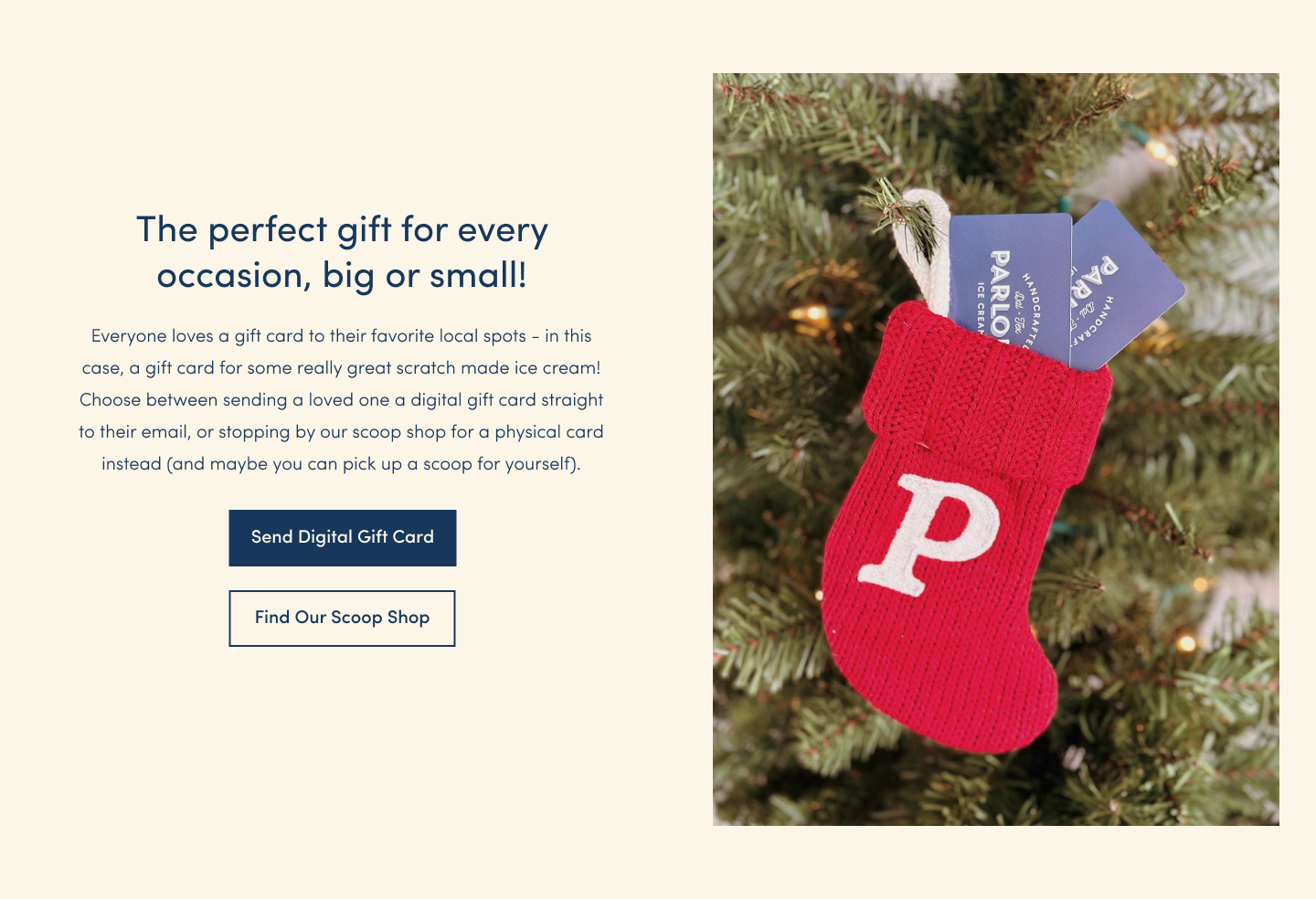 Adding the ability to purchase digital gift cards on a local ice cream business’ website.
