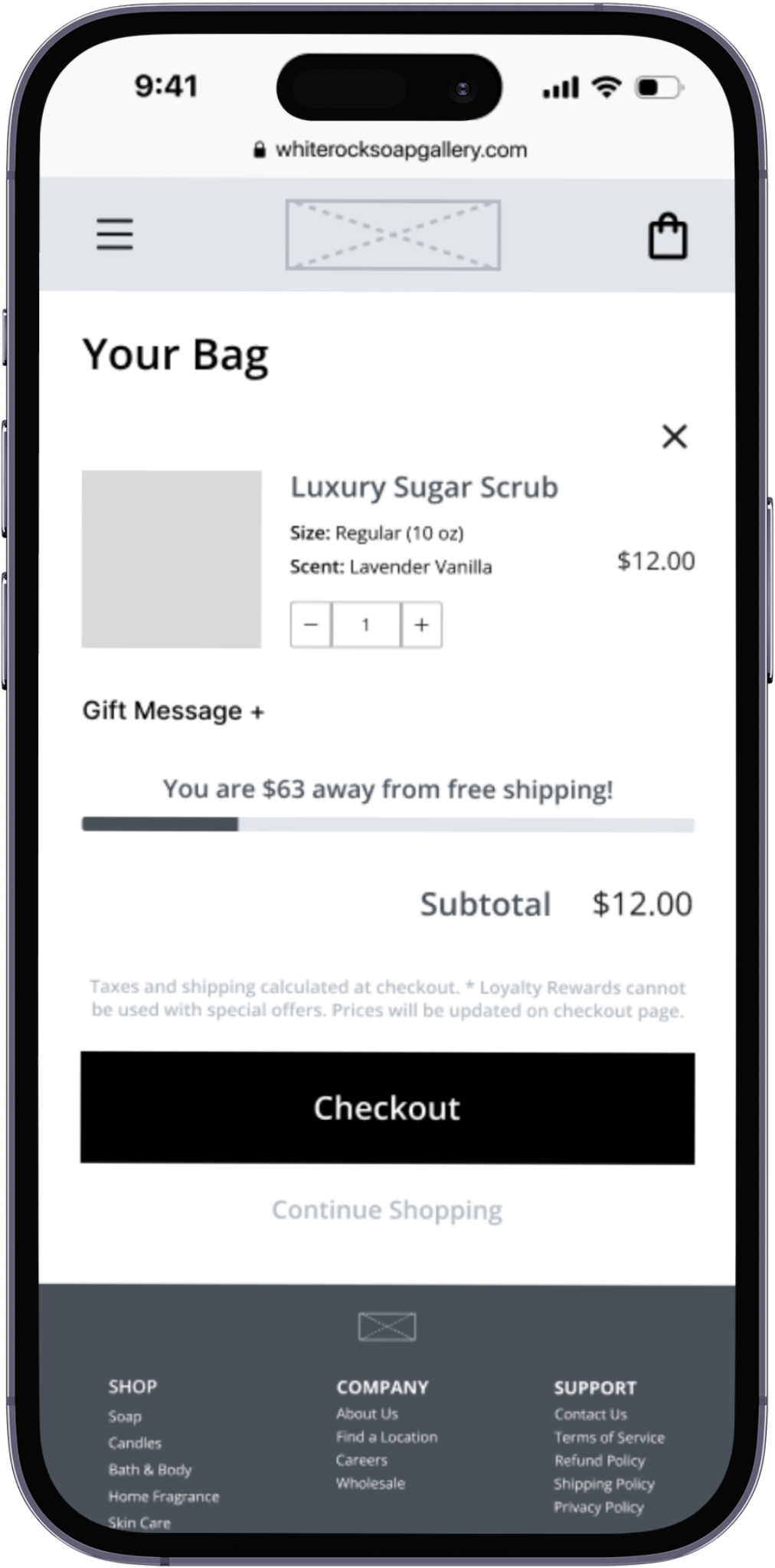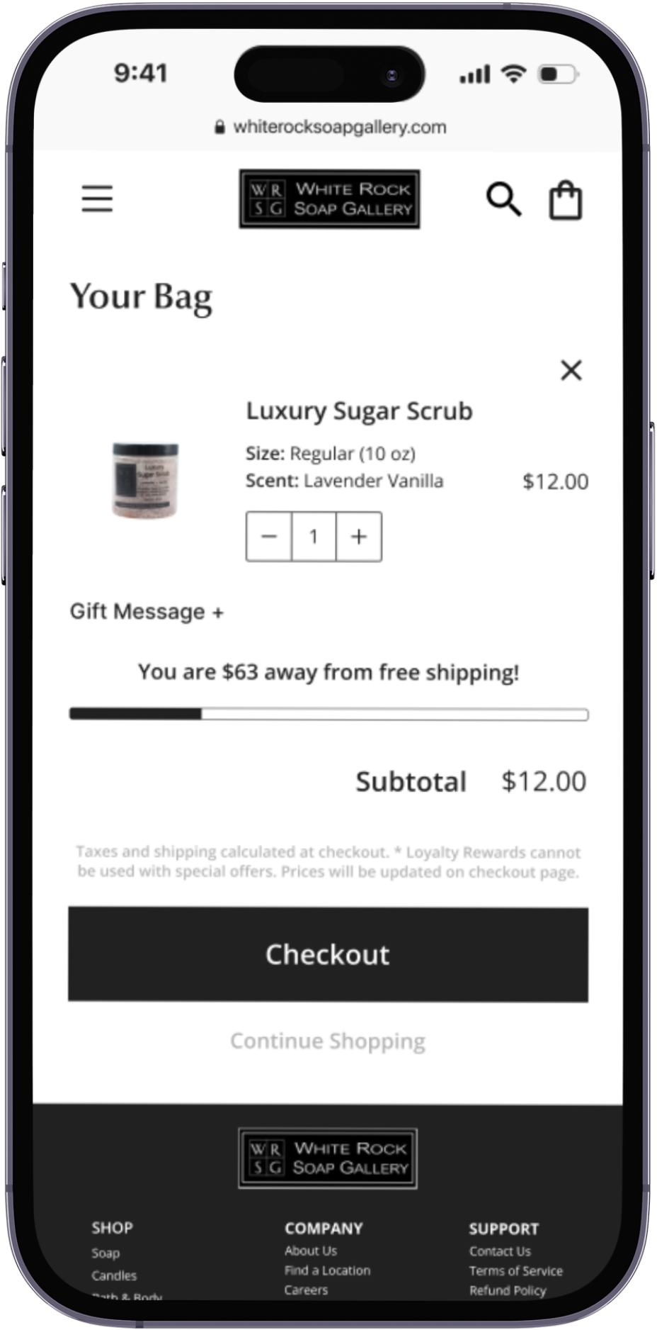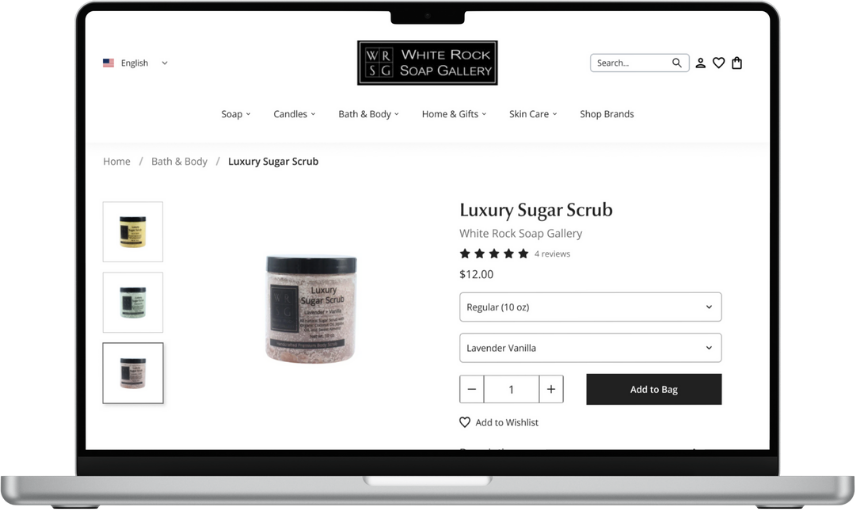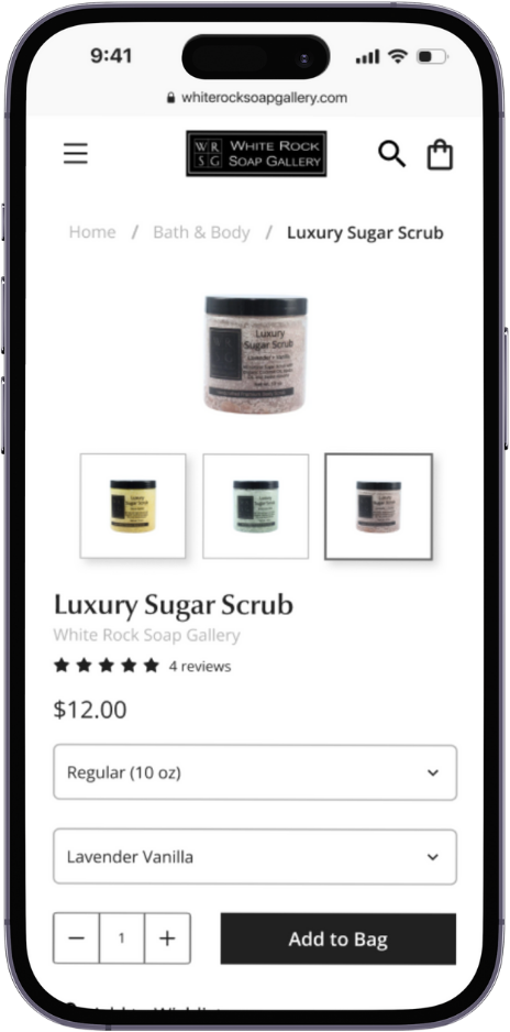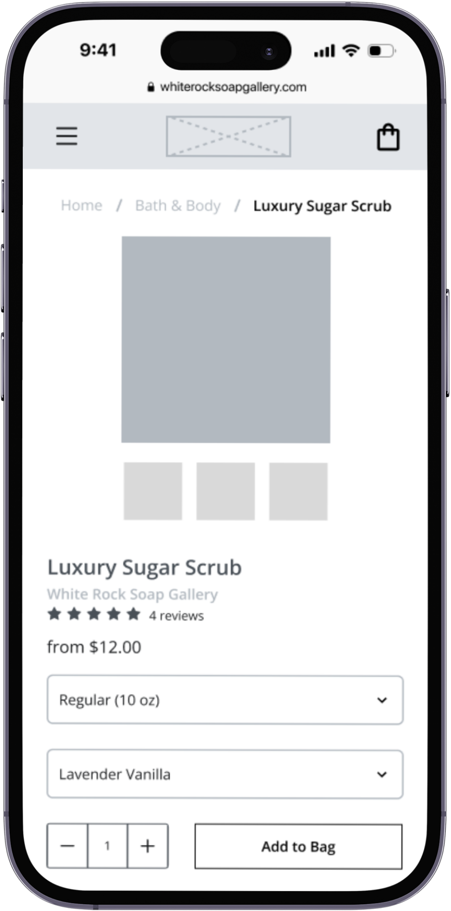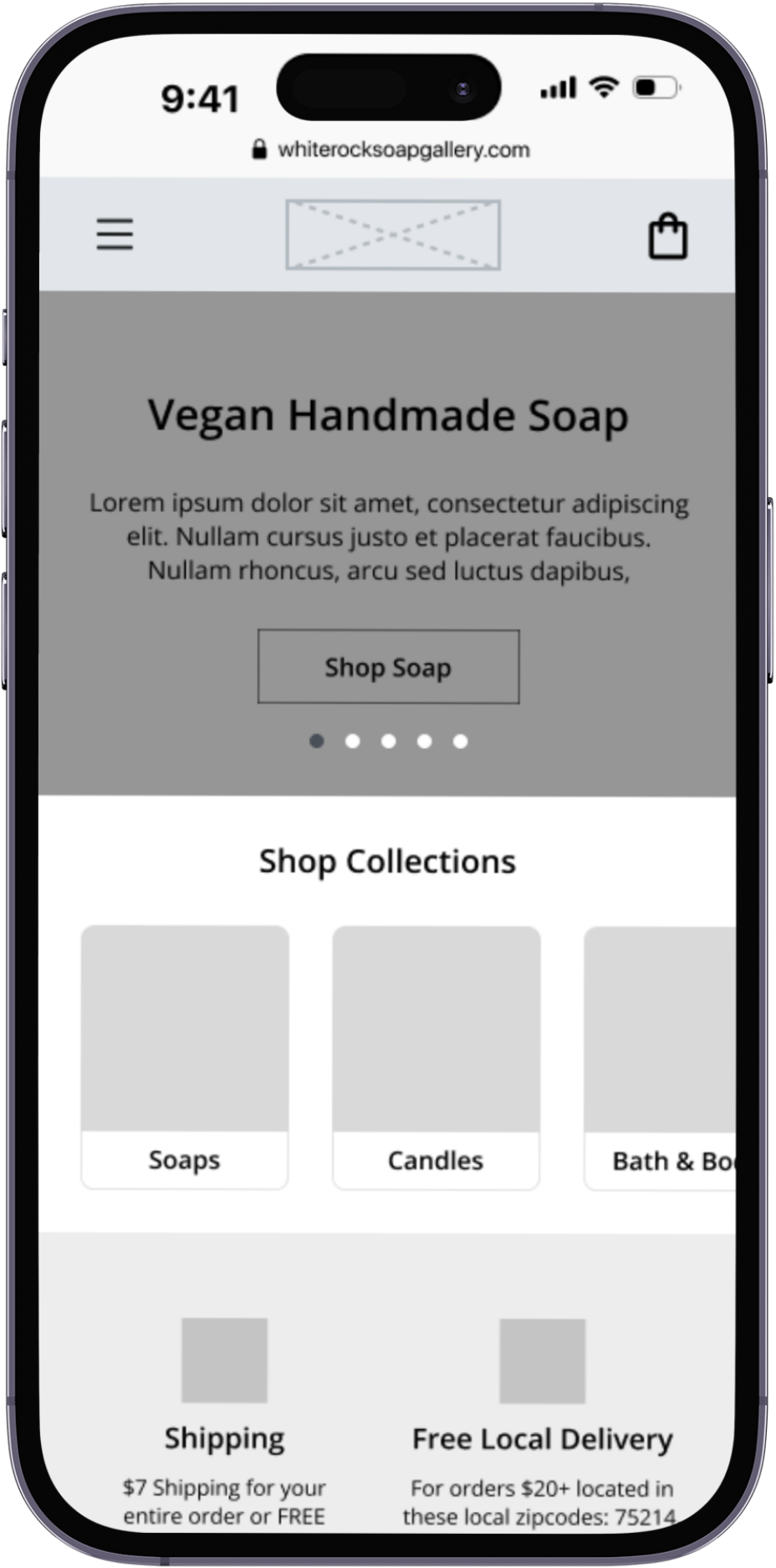 The White Rock Soap Gallery website was redesigned to improve hierarchy and information architecture, readability, and consistency, which were issues identified while conducting user research. Maintaining the current business branding, a new responsive design was created based on the original website.