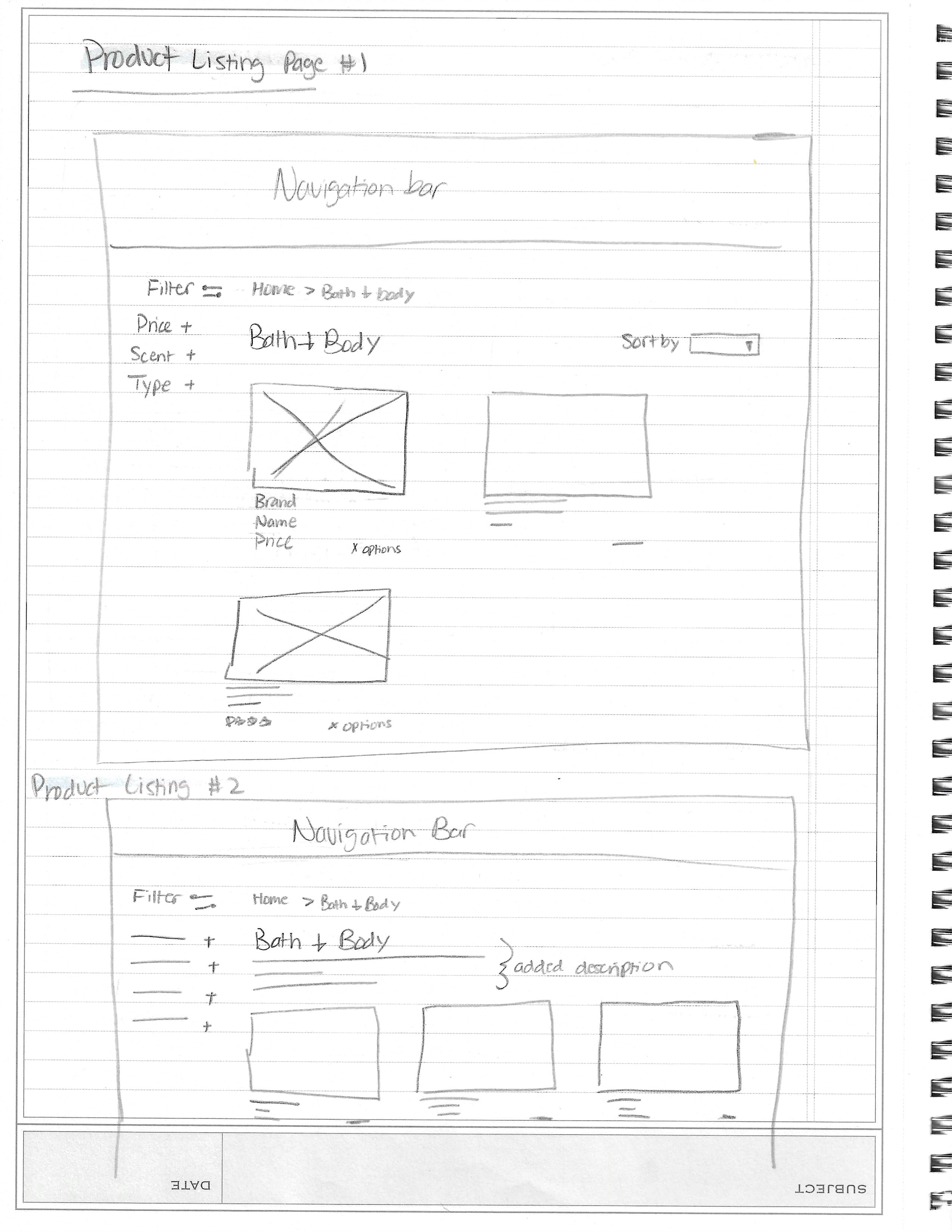 Figure 9. Sketches of mobile product listings page and filters modal.